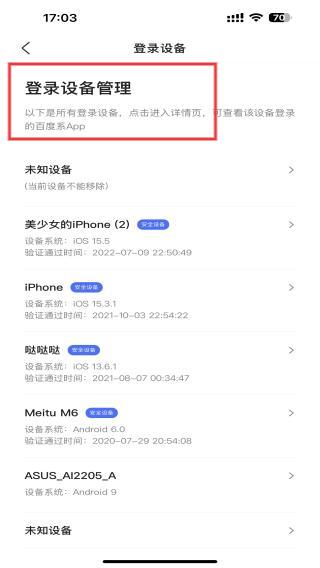 4、點(diǎn)擊進(jìn)入后,即可查看歷史登錄的設(shè)備、時(shí)間等信息。