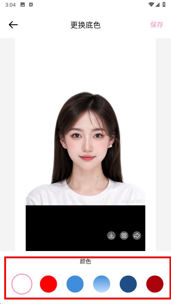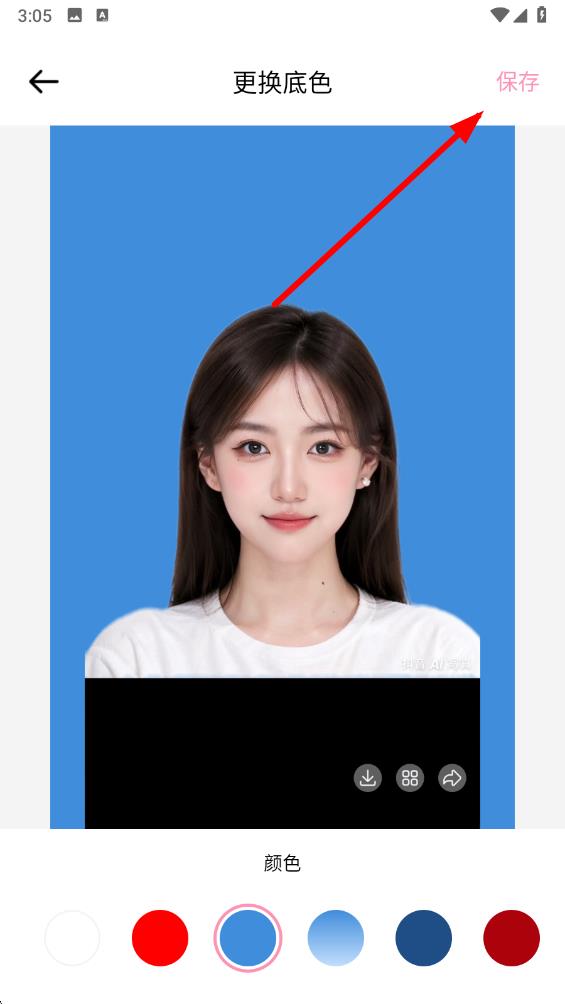 4、選好底色后,點(diǎn)擊界面右上角的保存按鈕,即可保存已更換底色的證件照。