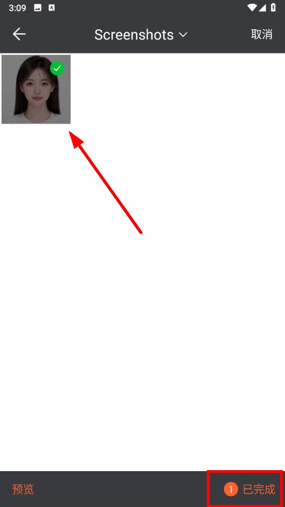 2、進(jìn)入照片選擇界面后,從相冊(cè)中選擇需要更換底色的證件照,然后點(diǎn)擊已完成確認(rèn)選擇。