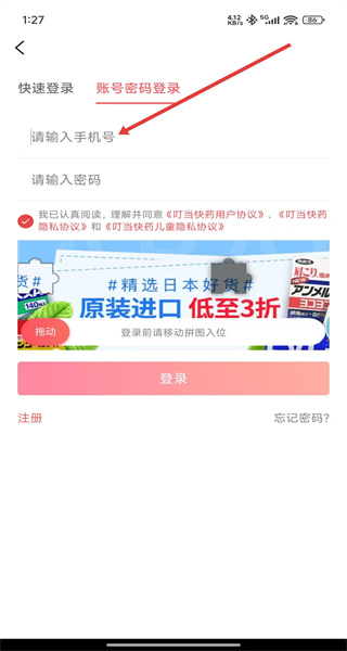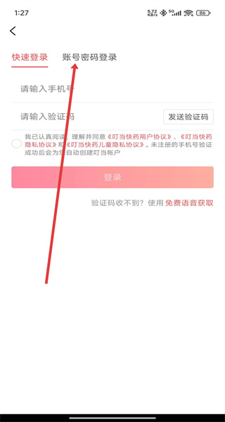 3、在跳轉(zhuǎn)到登錄頁(yè)面時(shí),可以通過(guò)點(diǎn)擊賬號(hào)密碼登錄按鈕,切換登錄的方式。