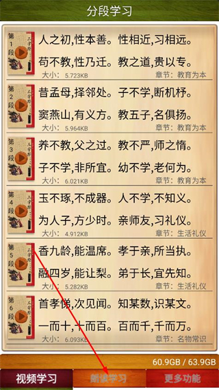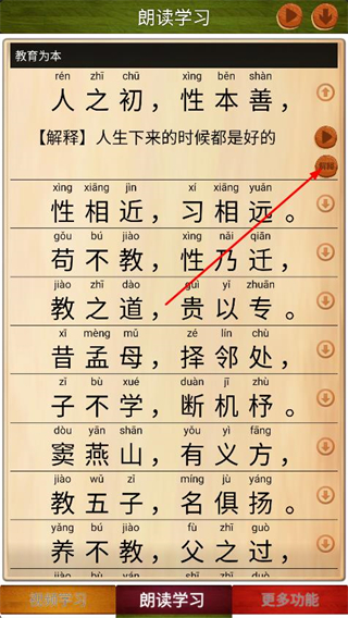 1、打開三字經(jīng)全文朗讀,點擊下方的朗讀學習選項。