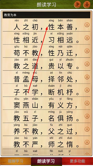 2.全文朗讀模式下的三字經(jīng)所有發(fā)音、拼音注釋、解釋等均可在不連接網(wǎng)絡(luò)的狀態(tài)下朗讀學習。
