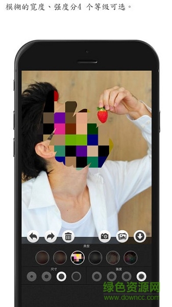 模糊馬賽克手機軟件可以用各種濾鏡效果編輯照片,簡單好用,功能強大!使用本軟件可以使手指抹過的地方變模糊。還有帶有廣告的免費版。有多種馬賽克樣式,模糊的寬度、強度分4個等級可選。