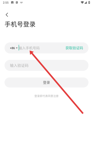 3、在進(jìn)入到手機(jī)號(hào)登錄頁(yè)面后,可以點(diǎn)擊輸入框填寫手機(jī)號(hào)碼以便獲取驗(yàn)證碼。