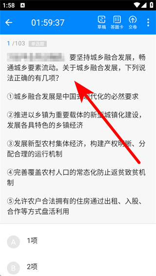 4、在答題界面,即可開始解答題目如行測單選題,完成答題操作。