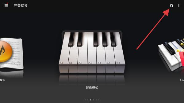 1、打開模擬鋼琴App,主界面點擊右上角的皮膚圖標,進入皮膚的設置頁面。