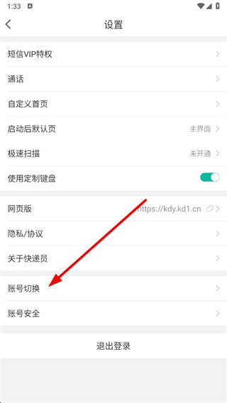 3、在設(shè)置頁面,點(diǎn)擊賬號(hào)切換進(jìn)入賬號(hào)管理界面。