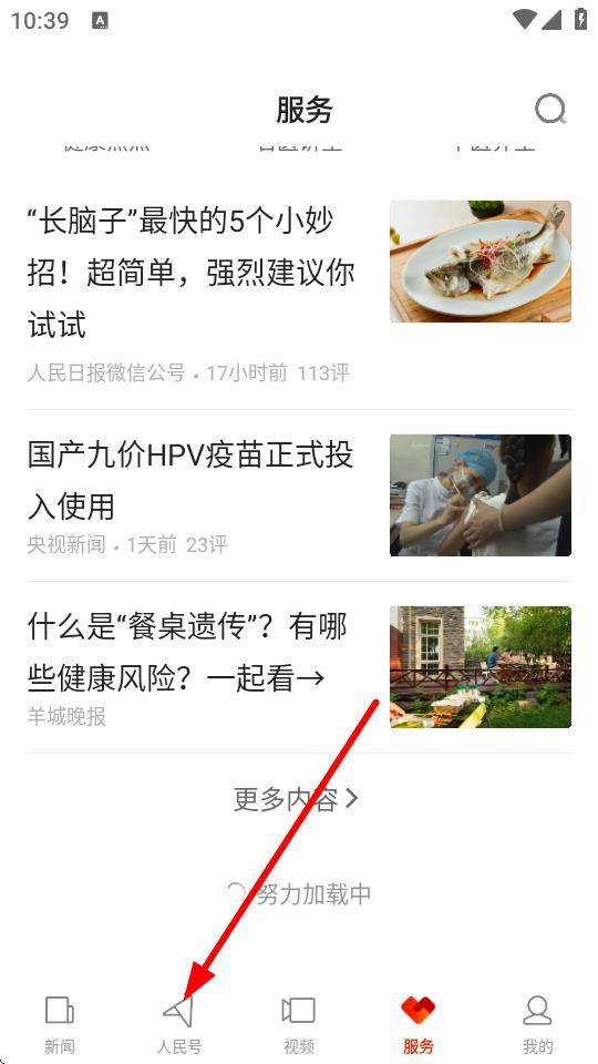 1、打開(kāi)人民日?qǐng)?bào)APP,點(diǎn)擊底部導(dǎo)航欄中的人民號(hào)選項(xiàng)。