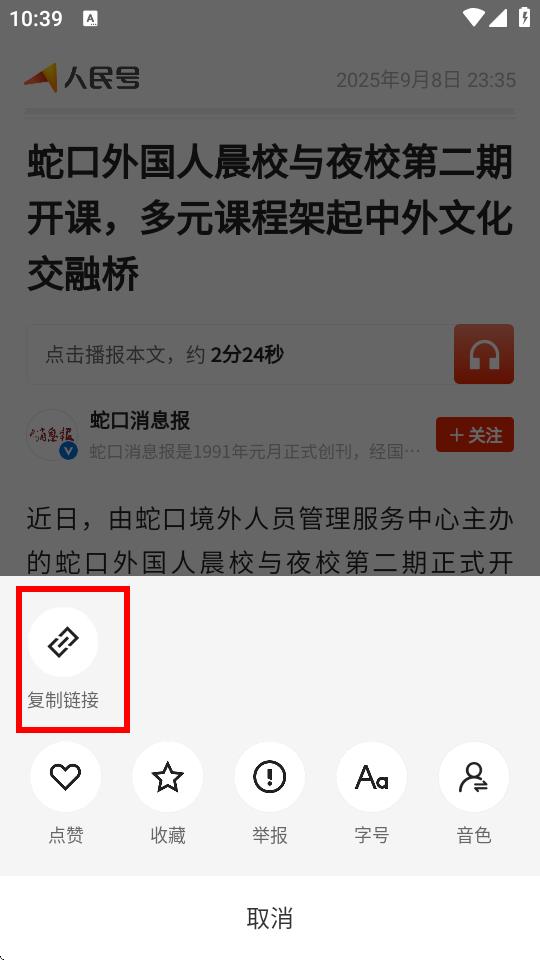 4、點(diǎn)擊分享圖標(biāo)后,會(huì)彈出分享選項(xiàng)菜單,在菜單中選擇復(fù)制鏈接,之后就可以將復(fù)制的鏈接分享給他人了。