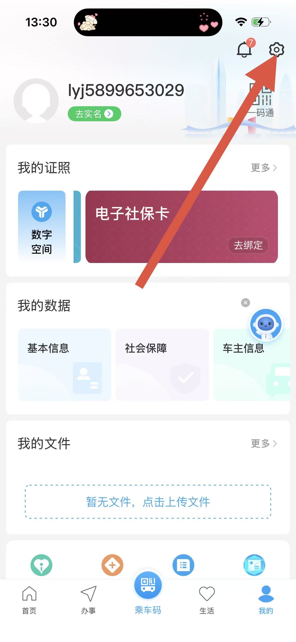 2、在個人頁面中,點擊右上角設(shè)置圖標(biāo),進(jìn)入設(shè)置界面。