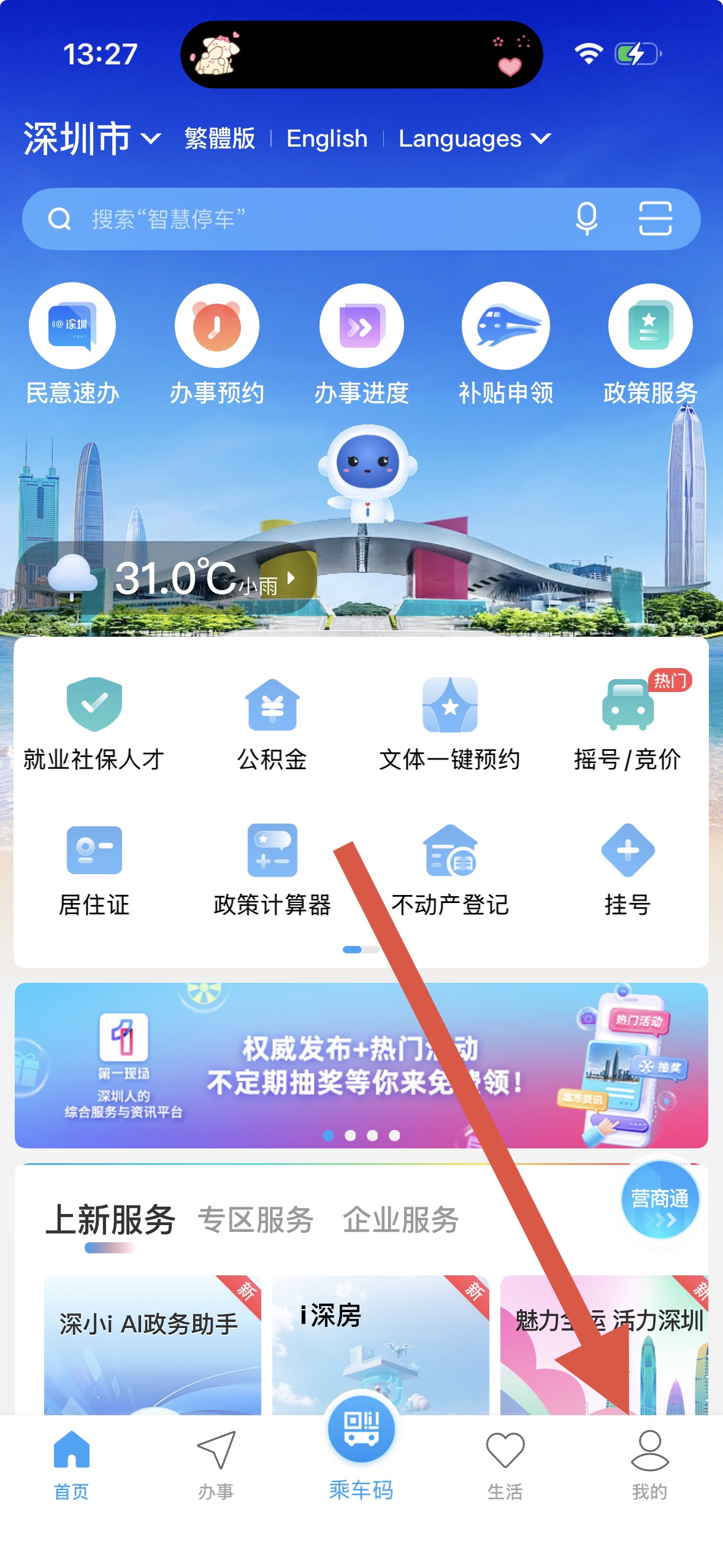 1、打開i深圳APP,在首頁點擊右下角我的選項進(jìn)入個人頁面。