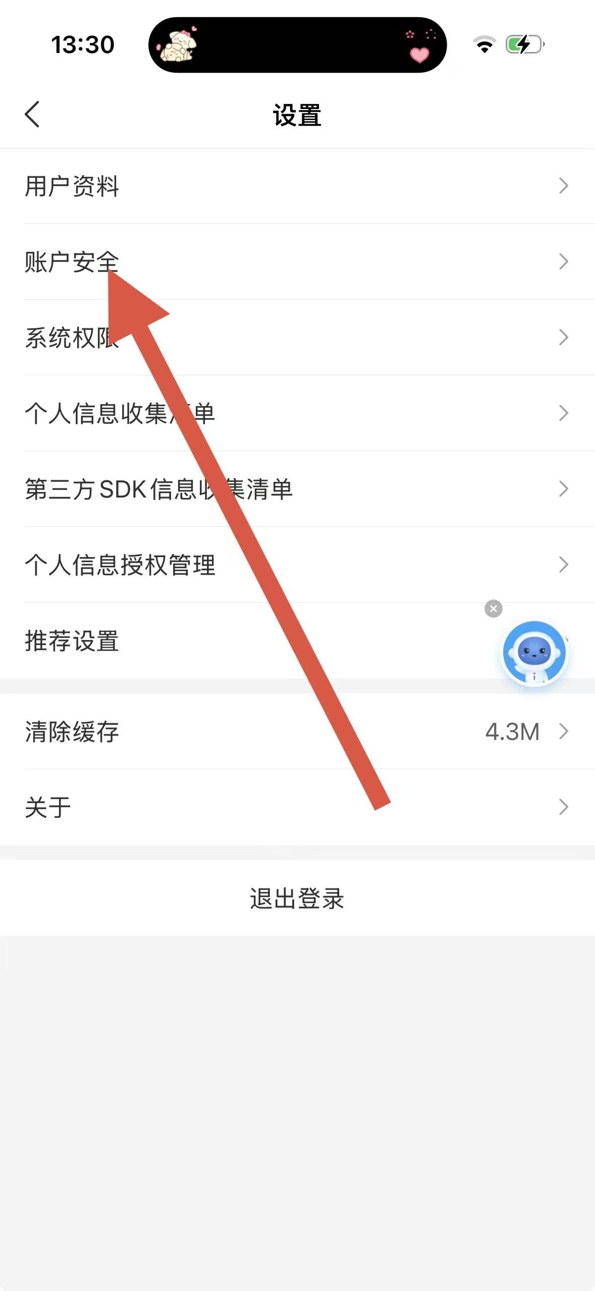 3、在設(shè)置界面里,點擊賬戶安全選項,進(jìn)入賬戶安全設(shè)置頁。