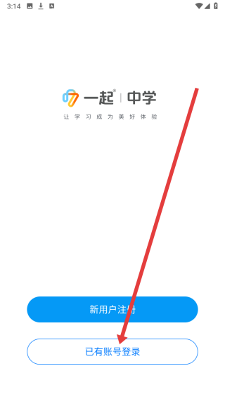 2、在進(jìn)入到一起中學(xué)初始頁(yè)面時(shí),可以點(diǎn)擊已有賬號(hào)登錄按鈕,進(jìn)行登錄操作。