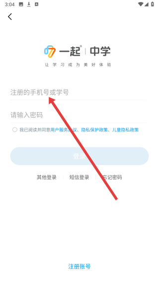 3、在進(jìn)入到登錄頁(yè)面中后,點(diǎn)擊輸入框依次填寫手機(jī)號(hào)或?qū)W號(hào)以及密碼,完成登錄。