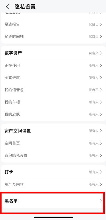 2、在隱私設(shè)置頁(yè)面中,下滑找到并點(diǎn)擊黑名單選項(xiàng)。
