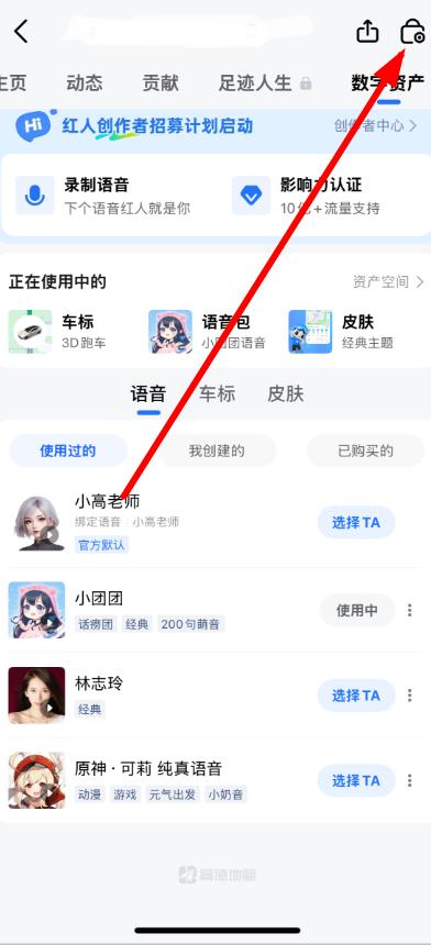 1、打開高德地圖進(jìn)入個人頁面,點(diǎn)擊右上角數(shù)字資產(chǎn)旁的圖標(biāo)進(jìn)入隱私設(shè)置頁面。