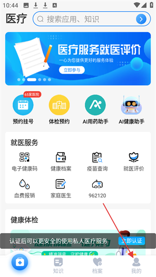 1、打開健康天津app,點擊底部導(dǎo)航欄中的我的選項。