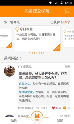 小冤家app家長入口是一款非常好用的心理健康咨詢手機(jī)軟件,主要可以讓家長對孩子的心理進(jìn)行咨詢和輔導(dǎo),還可以更好的育兒,打開手機(jī)即可進(jìn)行操作,十分的方便快捷,歡迎有需要的朋友到綠色資源網(wǎng)下載使用。