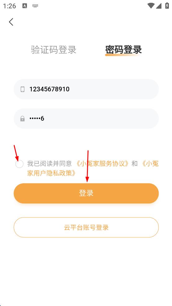 4、勾選我已閱讀并同意小冤家服務(wù)協(xié)議和小冤家用戶隱私政策,點擊“登錄”按鈕,完成登錄操作。