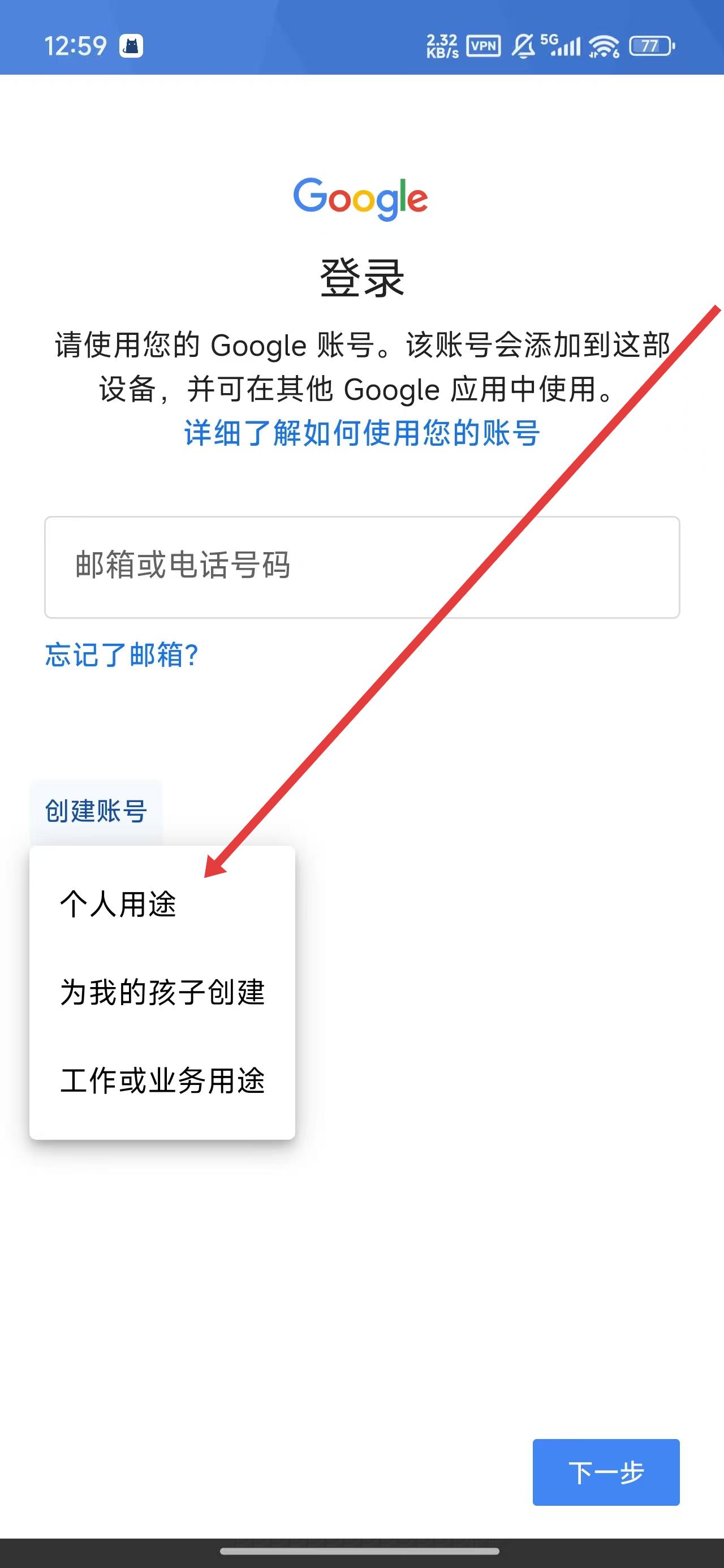 2、點(diǎn)擊創(chuàng)建賬號(hào)按鈕后,可以點(diǎn)擊選擇個(gè)人用途進(jìn)行創(chuàng)建。