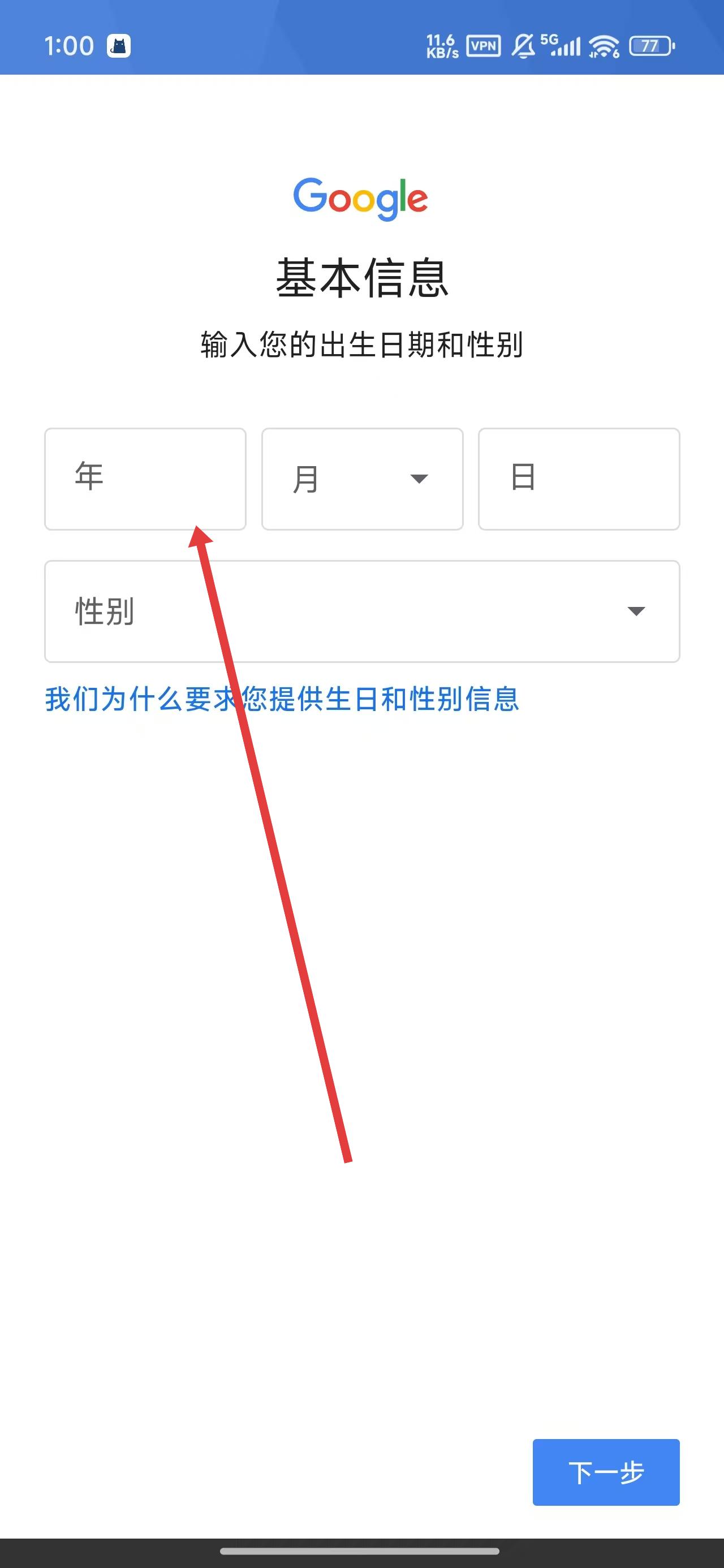 4、在基本信息界面中,點(diǎn)擊填寫出生日期和性別后,逐步完成創(chuàng)建操作。
