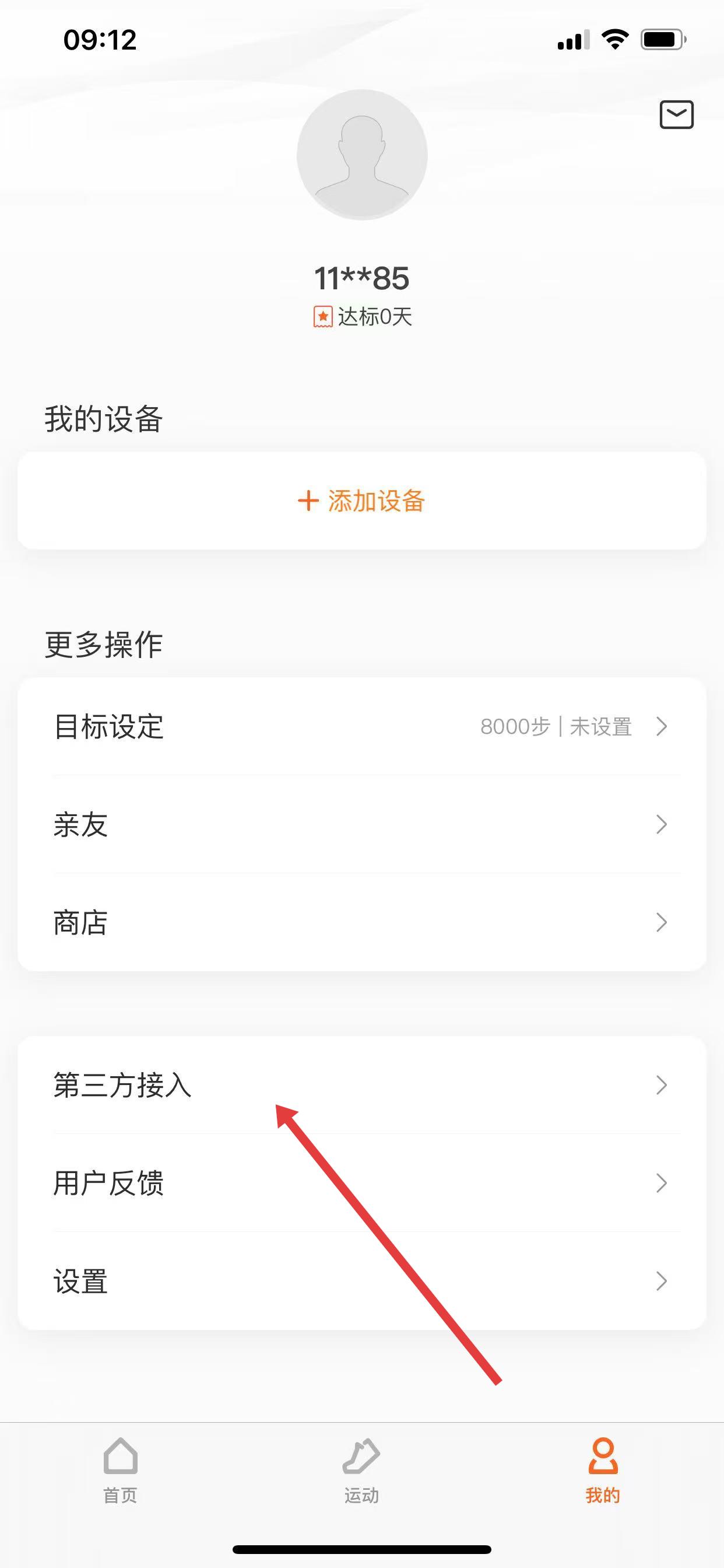 1、打開小米運(yùn)動(dòng)健康A(chǔ)PP,點(diǎn)擊頁(yè)面右下角「我的」,進(jìn)入個(gè)人中心后,選擇「第三方接入」選項(xiàng)。