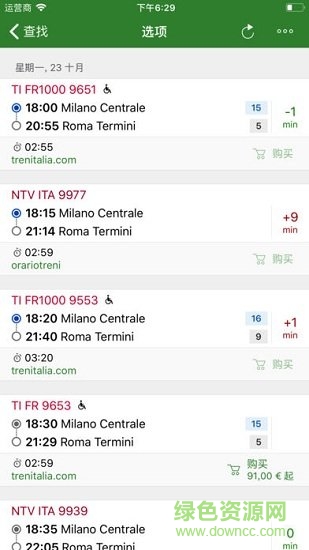 意大利火車時刻表ios版是一款為中國同胞提供的意大利火車、高鐵在線查詢工具,幫助用戶更好的了解車票信息,在線訂票更加便捷,綠色資源網(wǎng)誠意推薦!