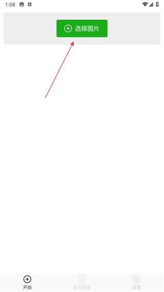 1、打開Bigjpg應(yīng)用,進入主界面,點擊界面上方的選擇圖片綠色按鈕。