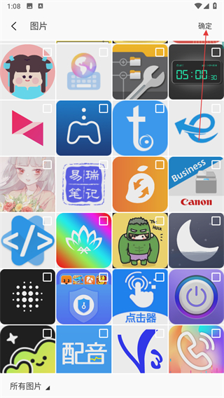 2、進入手機圖片選擇界面后,勾選想要放大的圖片,然后點擊右上角的確定選項。