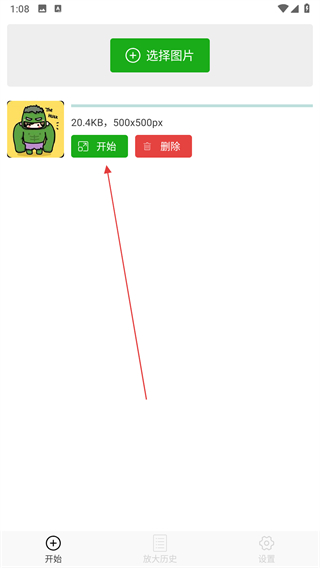 3、返回到應(yīng)用主界面,可以看到已選擇的圖片,點擊圖片下方的綠色開始按鈕。