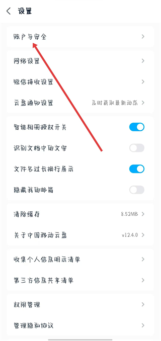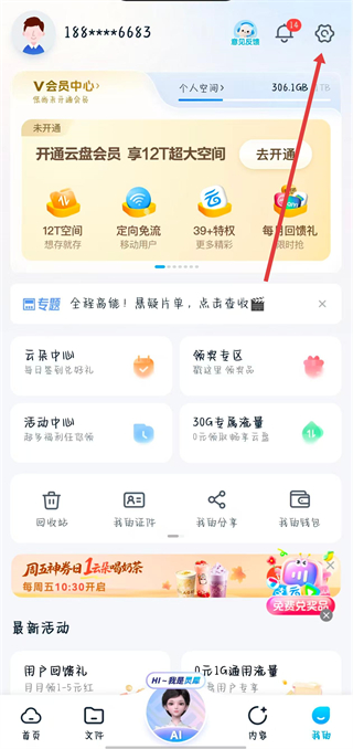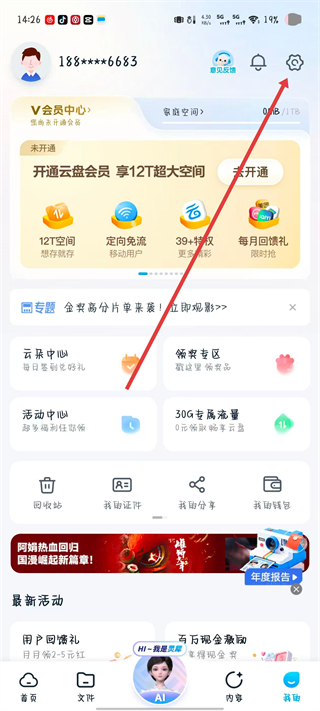 1、打開中國移動云盤APP,點(diǎn)擊設(shè)置圖標(biāo)。