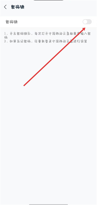 4、點(diǎn)擊密碼鎖右側(cè)的開關(guān)按鈕,將其開啟。