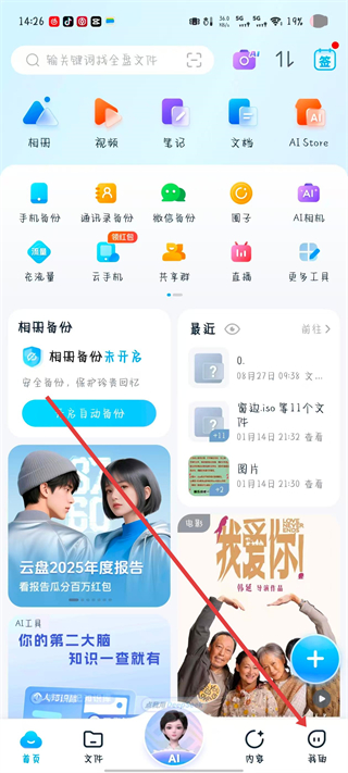 1、打開中國移動云盤應(yīng)用,點(diǎn)擊我的選項(xiàng)。