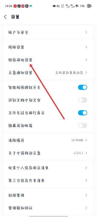 3、在設(shè)置頁面,找到并點(diǎn)擊短信接收設(shè)置選項(xiàng)。