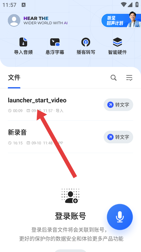 4、導入完成后,該音頻文件會出現(xiàn)在文件列表中,可進行后續(xù)轉(zhuǎn)文字等操作。
