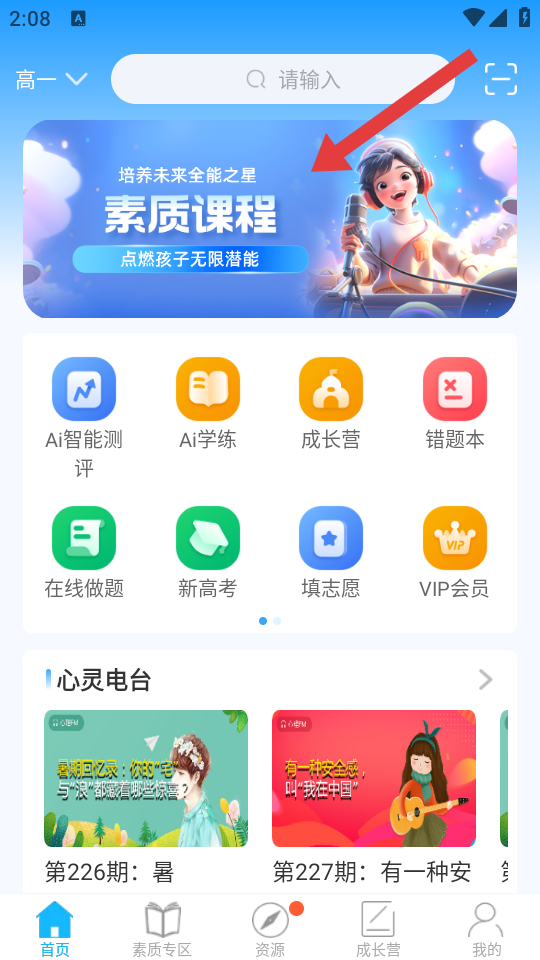 1、在趕考狀元首頁(yè),點(diǎn)擊頂部素質(zhì)課程,進(jìn)入素質(zhì)教育資源的頁(yè)面。