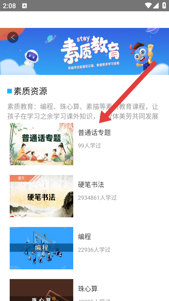 2、在素質(zhì)資源列表中,選擇要觀看的課程如普通話專題,進(jìn)入課程播放界面。
