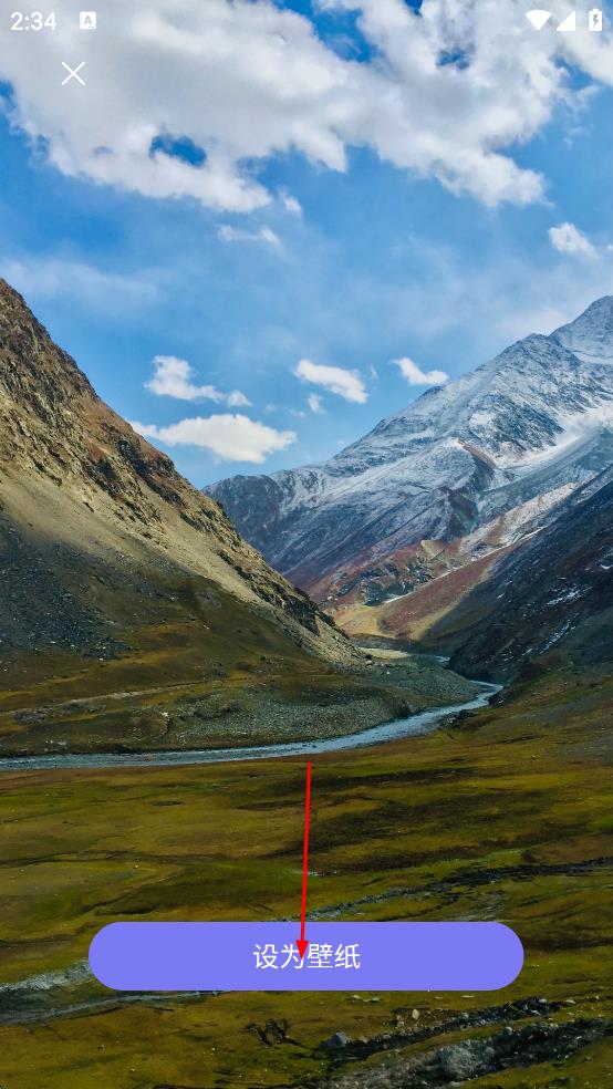 3、在壁紙詳情展示頁,點擊下方“設(shè)為壁紙”按鈕,按提示完成山水壁紙設(shè)置 。