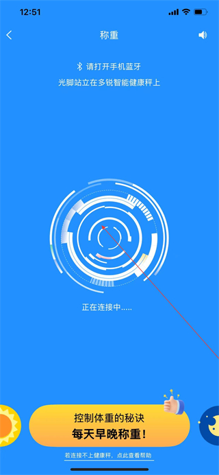 3、打開藍(lán)牙,光腳站立在多銳智能健康秤上,等待設(shè)備完成連接。