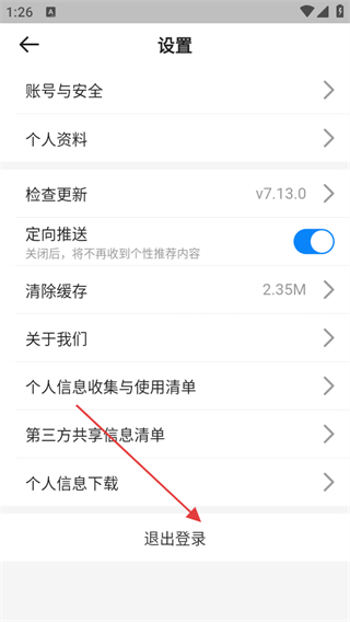 3、在設(shè)置界面里,滑動屏幕找到并點(diǎn)擊退出登錄選項。