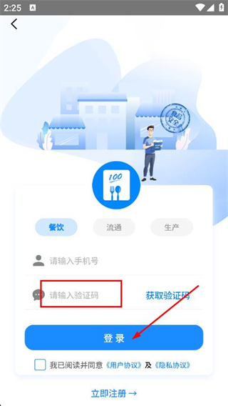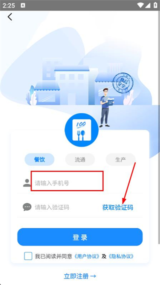 3、在登錄頁(yè)面,輸入手機(jī)號(hào),點(diǎn)擊獲取驗(yàn)證碼。
