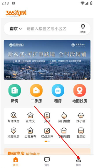 1、打開365淘房,點擊底部導(dǎo)航欄最右側(cè)的我的選項。
