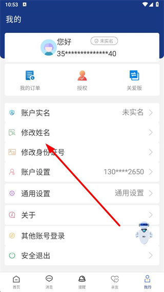 2、在我的頁(yè)面,點(diǎn)擊修改姓名選項(xiàng),進(jìn)入修改姓名頁(yè)面。