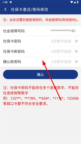 4、在密碼修改頁(yè)面,依次輸入原社??艽a、新密碼,完成后點(diǎn)擊確認(rèn)即可完成修改。