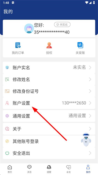 2、在我的頁(yè)面列表,找到賬戶設(shè)置選項(xiàng)并點(diǎn)擊進(jìn)入。