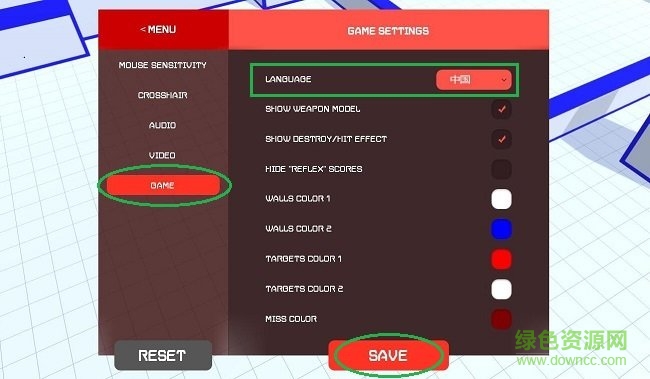 2.點(diǎn)擊最好一個選項“GAME”,在“LANGUAGE”下拉欄選擇“中文”,點(diǎn)擊最下面“SAVE”就變成了中文的