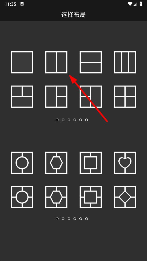2、在選擇布局頁面,瀏覽多種布局樣式,點擊選中符合自己需求的拼圖布局。