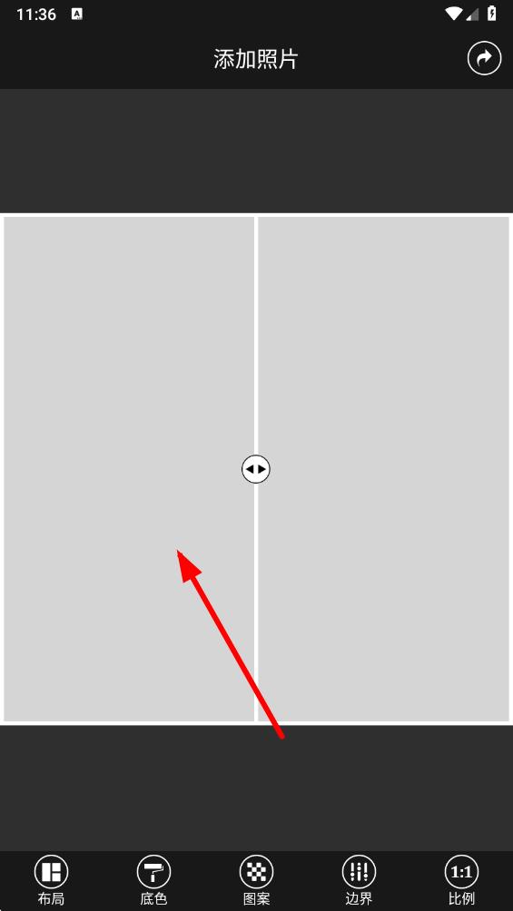 3、進入添加照片頁面,點擊相應區(qū)域的添加標識,從手機相冊中挑選想要拼接的照片。
