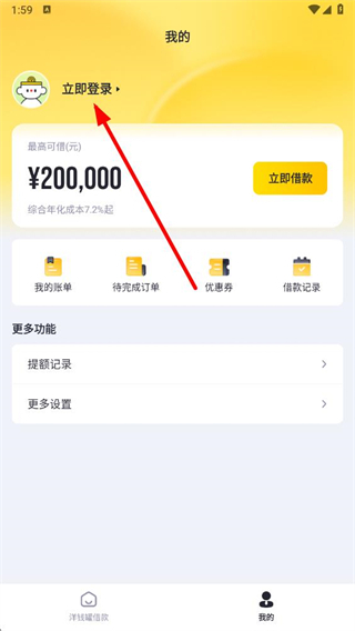 1、在洋錢罐借款app界面,點擊右下角我的,進入個人頁面。