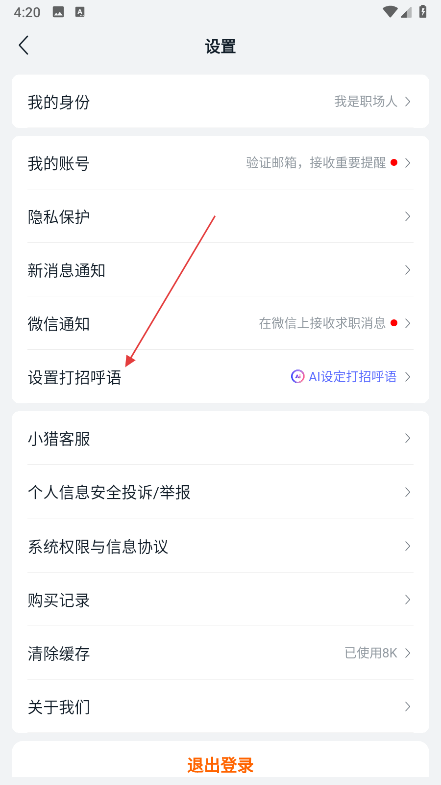 2、在設(shè)置頁面中,點擊設(shè)置打招呼語選項。